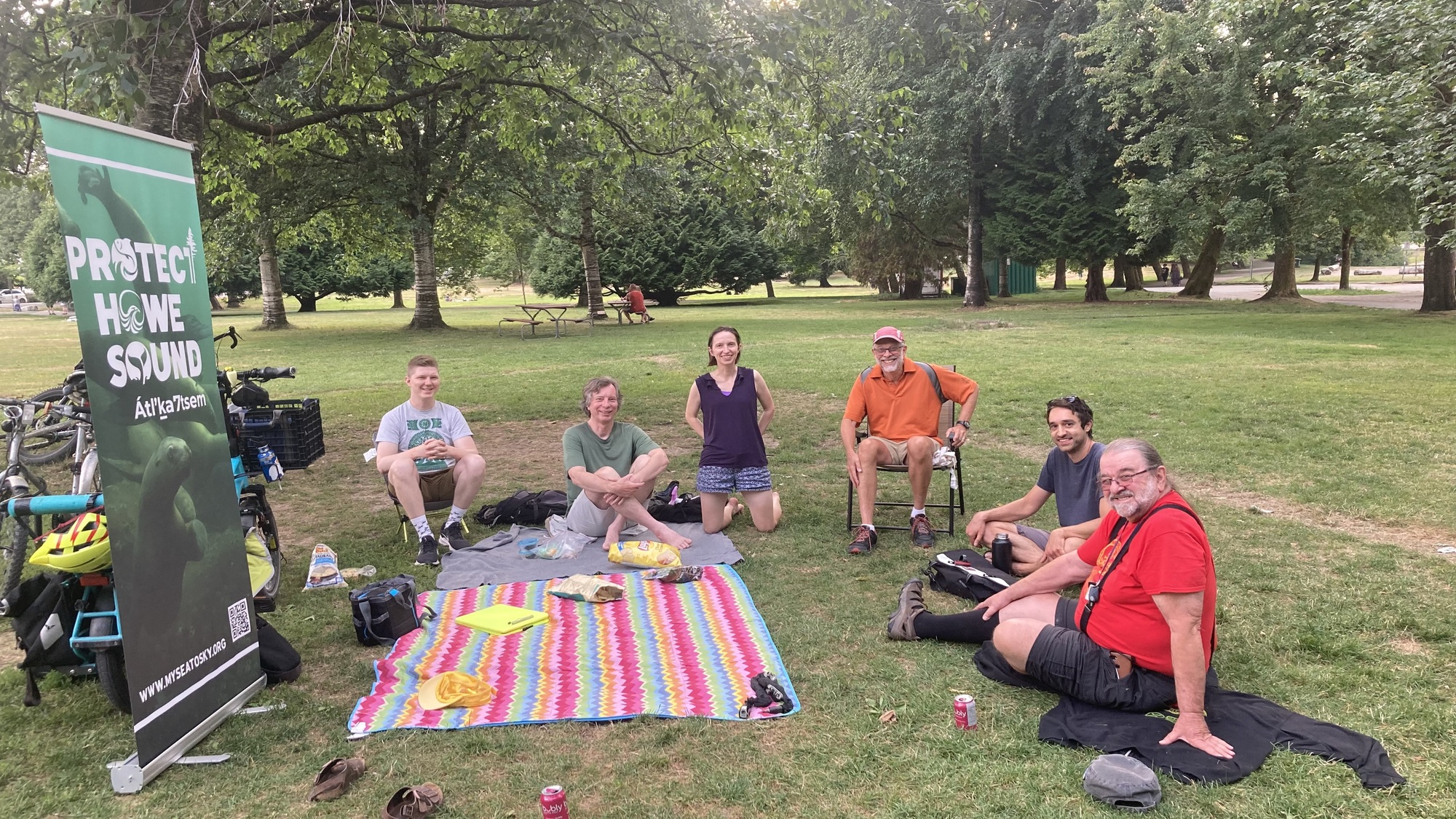 Meet at the south end of Trout Lake. Look for the "Protect Howe Sound" banner and the woman in the bright yellow cap.